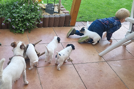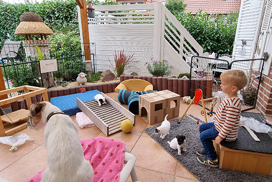 der Außenauslauf direkt am Wohnzimmer....unser Enkel spielt mit |